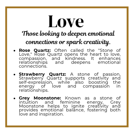 Rose Quartz – Opens the heart to love, compassion, and healing.